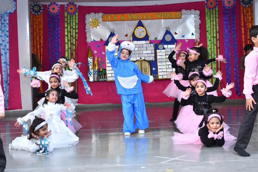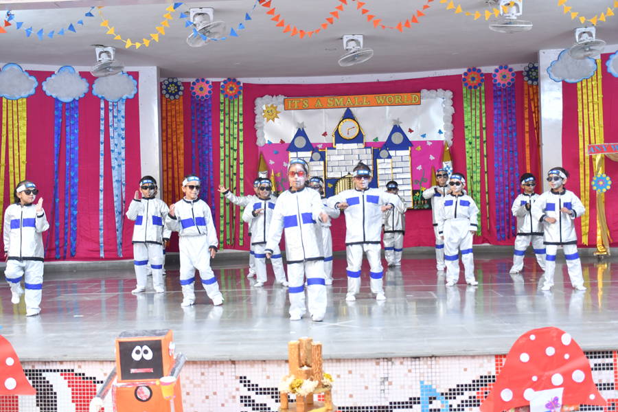 The theme for Nursery to UKG was “It’s a Small World.” Through the story of Doraemon and his friends, children went on a fun world tour using the gadget Anywhere Door. They visited Candy Land, a School, the Moon, Iceland, and a Forest. They visited many places but real happiness comes from nature. “Save Earth, Save Nature. The story gave a beautiful message. Children learned that nature is our true source of happiness.