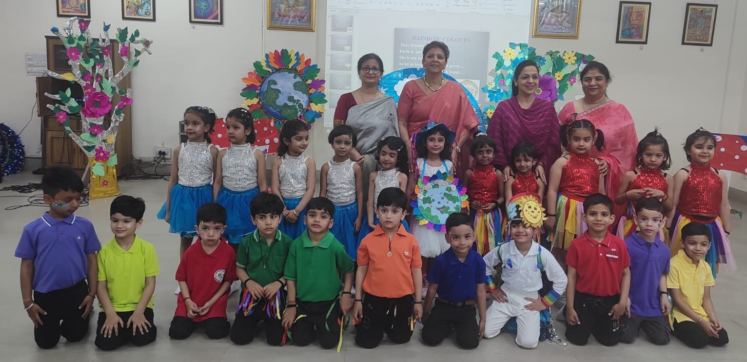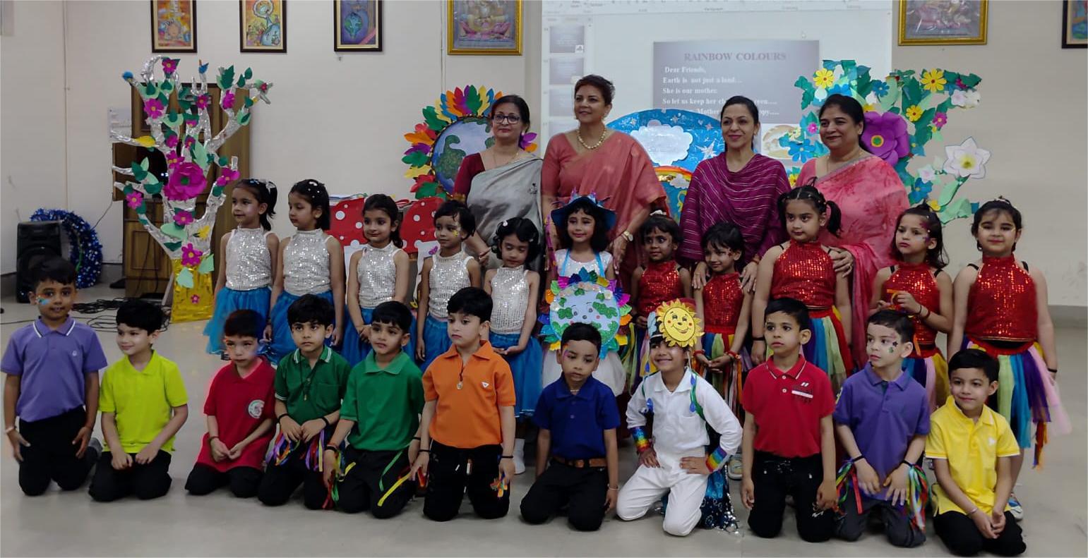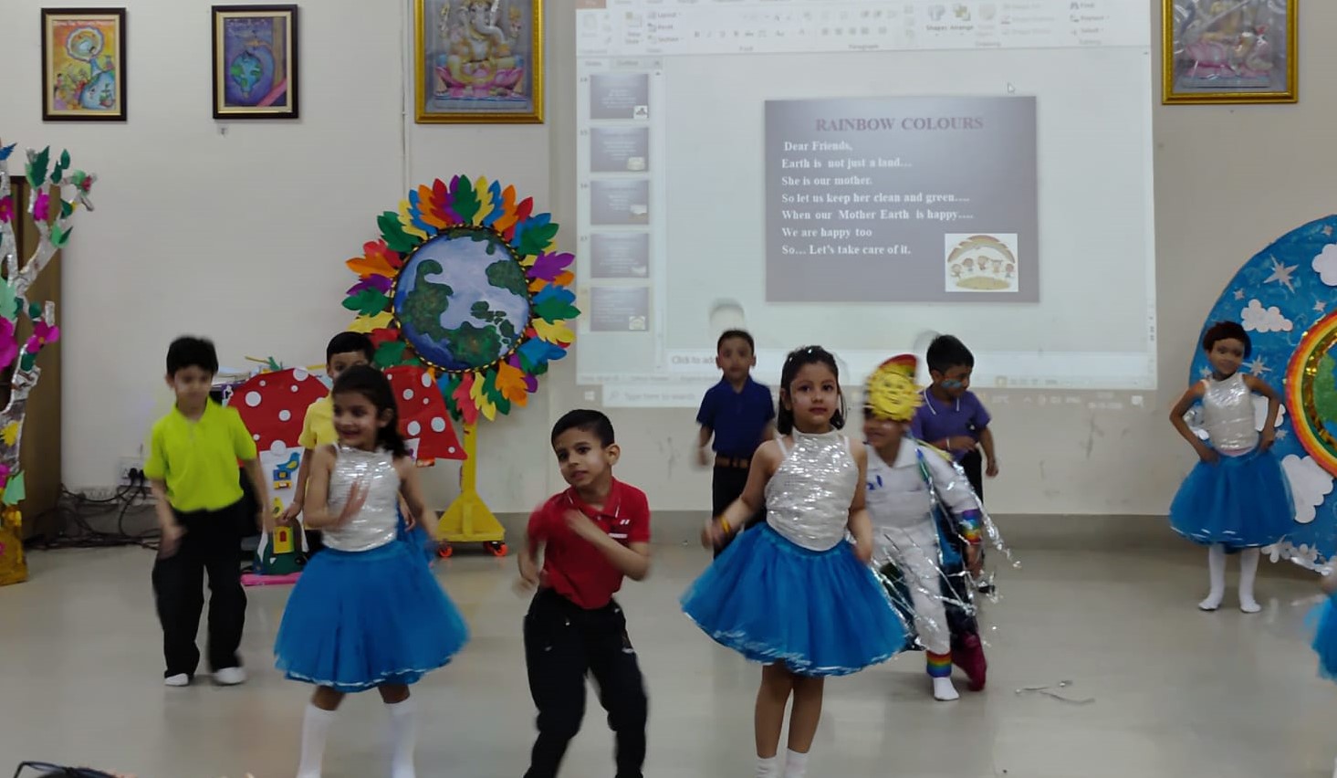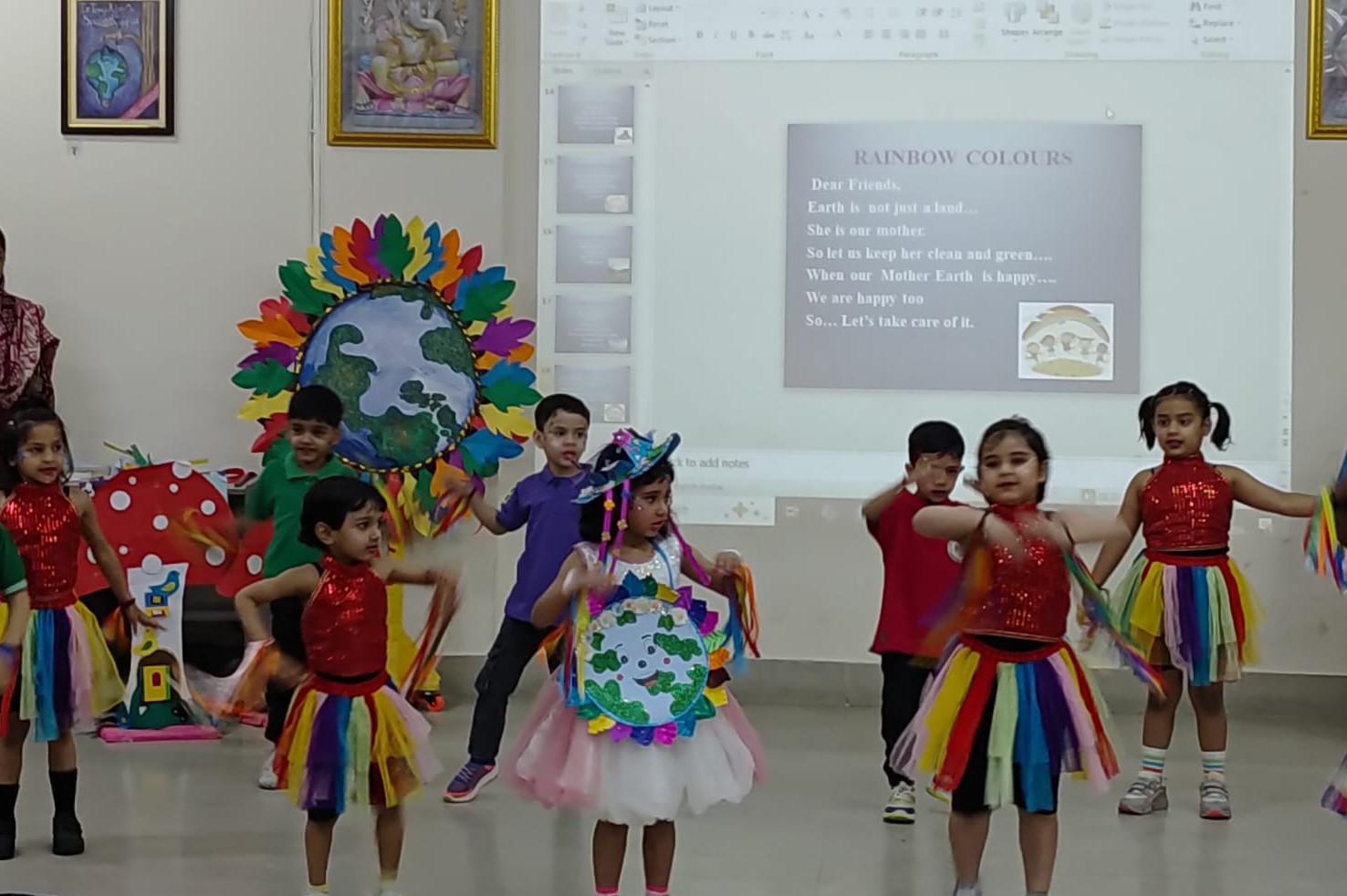 Today the LKG A students presented a beautiful assembly on the topic Rainbow Colours. The children showed the seven colours of the rainbow through a lovely skit. In the story, the Earth becomes sad and the Rainbow King uses his magic to bring back her colours and make the Earth beautiful again.