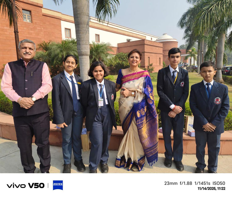 On 14.11.25, a group of school students from Lions Public School, Sector 10 A, Gurugram, accompanied by School Principal Mrs. Dipinder Kaur and Manager Mr. Rajiv Kumar, had the esteemed privilege to meet the Hon’ President on Children’s Day celebration at Rashtrapati Bhavan, New Delhi.